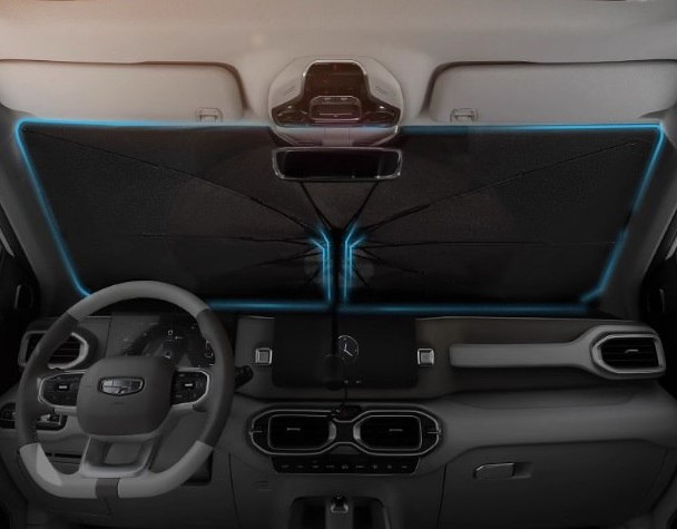 Це інноваційна шторка-парасолька, що допомагає зберегти в салоні комфортну температуру. Вона захищає панель приладів та сидіння від вигорання та пошкодження через вплив сонячних променів.
